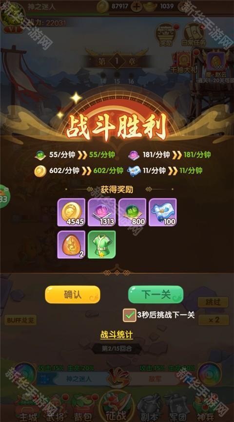 4、系统会自动跳转至下一关卡,玩家还可以在战斗中对武将进行培养