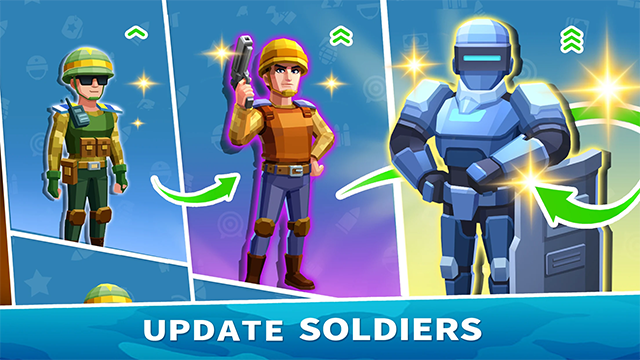 1.推广您的军事学院,让更多士兵参军!帮助他们完成所有训练,成为更强大的士兵,聚集他们并攻击敌人!