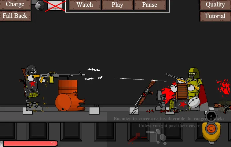 3.冲锋陷阵是一款射击flash类小游戏。这是一场疯狂的战争,对战的双方都是针锋相对