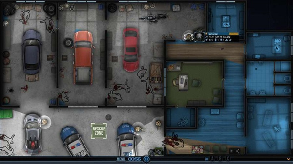 游戏全程是以俯视的形式进行操作,独特的画面风格和操作方式,与原作有很大的不同,在游戏中玩家首先要做的就是组织好自己的队伍,和小队里的成员一起完成更多的高难度任务,只有制定好战略才有更大的胜算破门而入,清理掉一切障碍,游戏还会自带录像功能,记录下你的英勇经历!