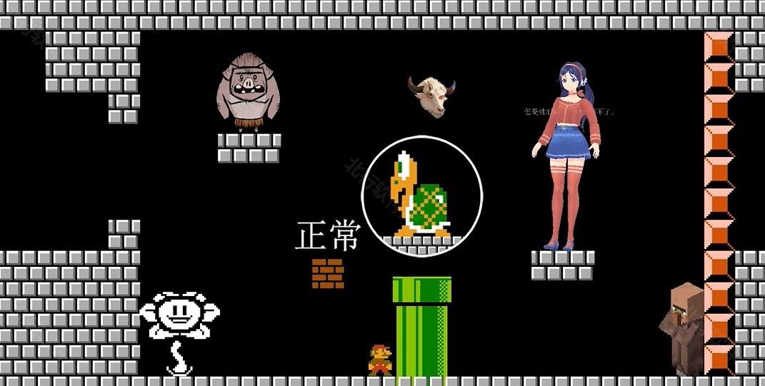 《马里奥指导版手机版》这是一款由b站UP主头牛o开发的一款采用经典马里奥游戏的横版闯关跳跃类游戏,在这款游戏里,玩家能够看到很多不同游戏里的角色前来客串,无论是传说之下的小花,还是米塔的帽子米塔,亦或是饥荒里的猪人,这款游戏里面都有!最重点的就是,在这款软件里,还有牛头来帮助你通关游戏,但是接受牛头帮助的后果也没什么好下场就是了...