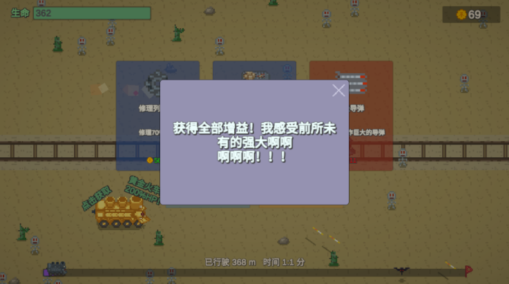 《无限列车》这款游戏是一款相当有趣的列车末日丧尸射击游戏,在这款游戏里,玩家要控制一辆穿梭于荒野的列车,这款游戏无限列车是一款画面精良的像素风格游戏,在这款游戏里玩家将要通过击杀僵尸来不断的提升自己的列车,然后再用升级后的列车杀更多的僵尸,玩法有趣,背景设定也很新奇,一望无际的沙漠荒野,只有成海般的尸潮和孤独的一列火车,非常有趣的游戏,快来下载体验吧!