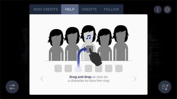 游戏的玩法非常的有趣,让玩家可以自由探索自己喜欢的音乐,而且每个不同的角色都会发出不同的声音,分为鼓点、音乐、人声等等,给玩家最好的游戏体验。