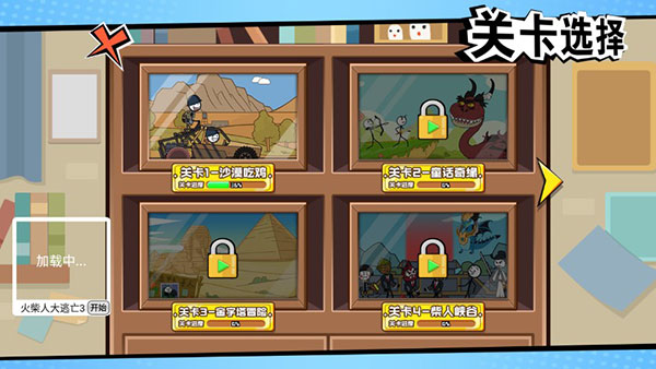 这个续作明显开发商投入了大成本了,每次登陆游戏还有剧情动画,增加了玩家的带入感!玩家需要根据剧情来选择剧情走向,其中一个走向是走向GAMEOVER了!想通关还是很难的。火柴人大逃亡第二季游戏内设丰富的关卡模式,每一个关卡的通关标准都不同,我们需要寻找新的游戏思路进行闯关。