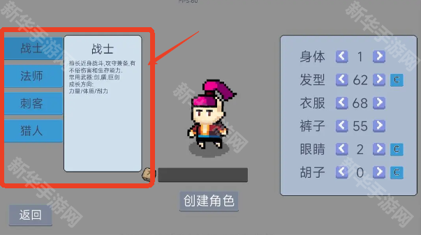 1、玩家打开游戏可以先创建一个角色再选择一个职业。