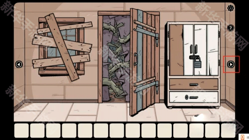 第二步,点击右侧箭头两下进入第二个房间。点击房门进入房间。