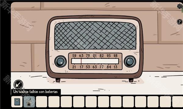 4、在白色门右边的抽屉柜里拿到两节「电池」,先把电池装进对讲机,然后将频道调到4听对讲机里播放的音乐,再点击收音机调整频道至你所听到的音乐频道上(这里要记住频道数字,不同音乐对应不同的频道)。注:组合物品:选择道具-Grab-选择要组合的道具,另外收音机右下方的抽屉里还有一个密码符号。