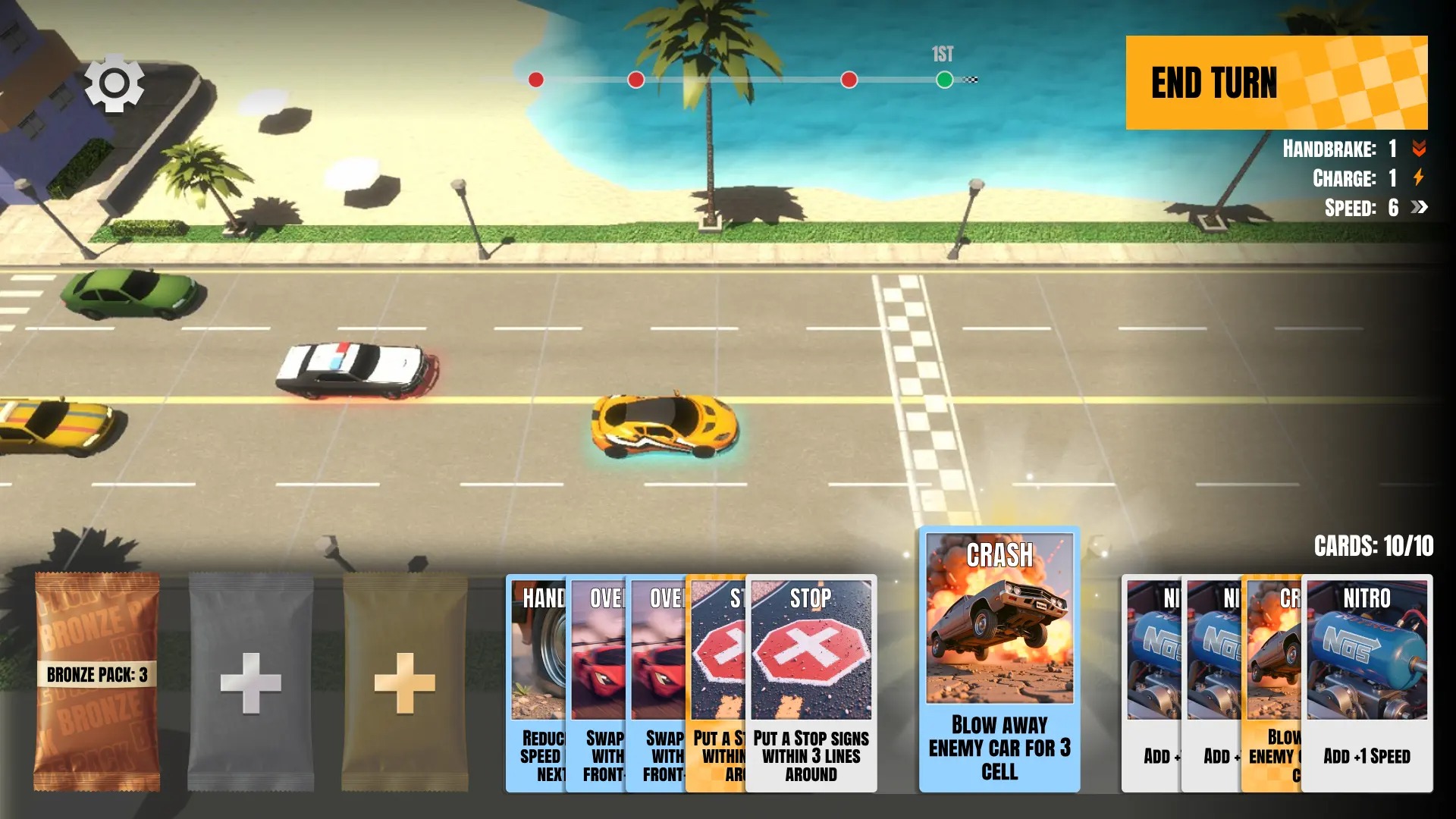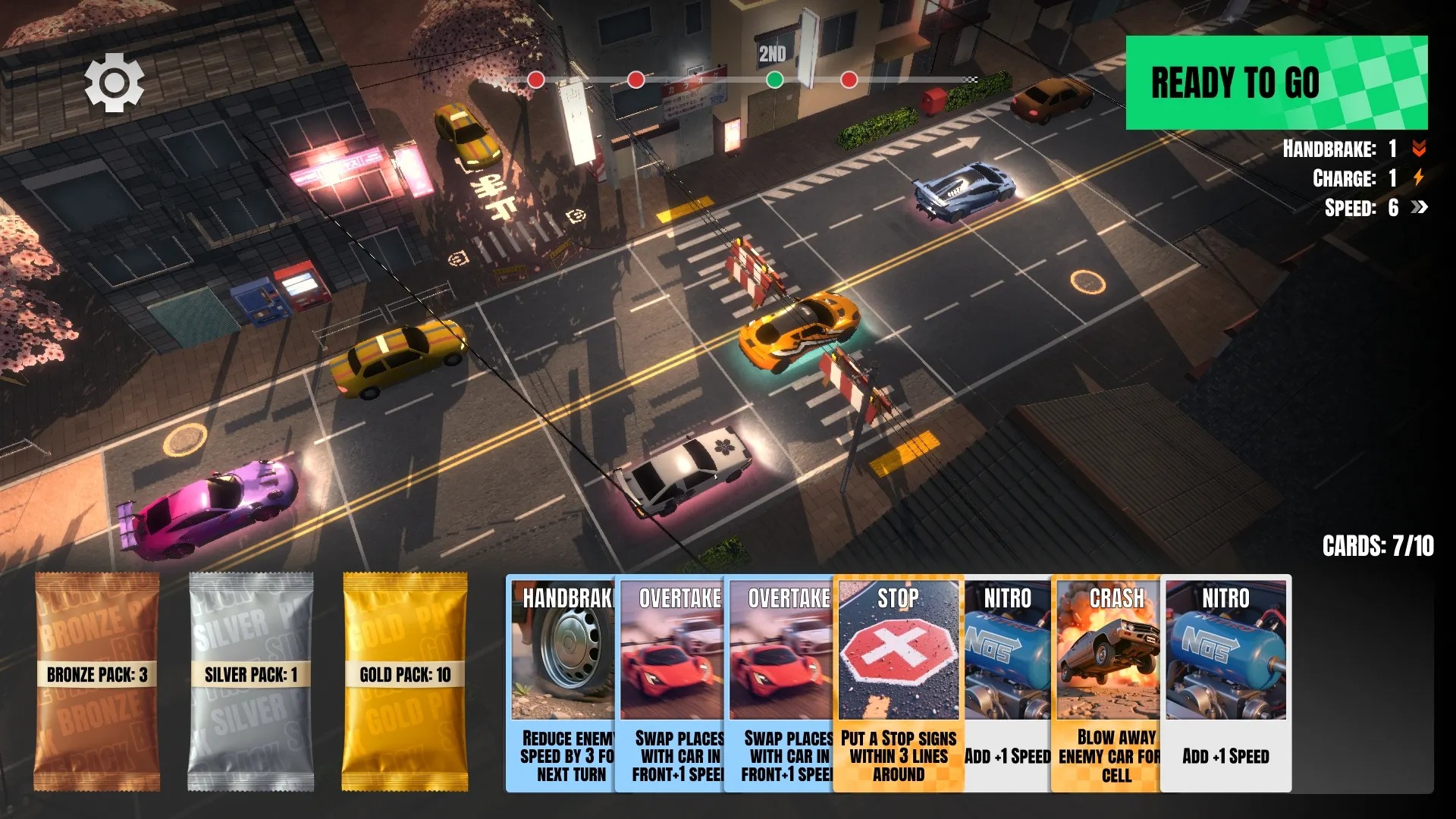 【街头冠军赛车3D】这是一款卡牌竞速类型的游戏,玩家需要通过抽卡来决定你的车辆的下一步行动,玩家需要观察赛车周围的环境,以便提供相应的卡牌,如车辆加速、对对手车辆的伤害、超载等技能。你的车可以不受限制地改装,以获得更强的动力,你也可以通过组合卡片形成组合,形成暴击,获得竞速的第一名,用更快的速度过弯,不断的积累速度优势,喜欢的快来试试看吧。