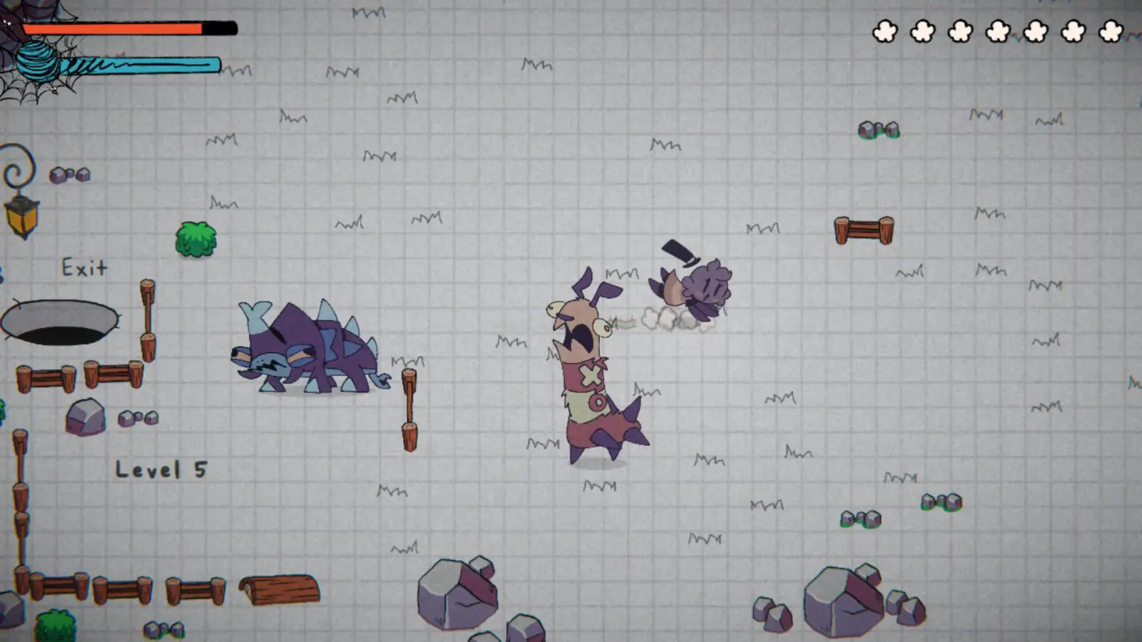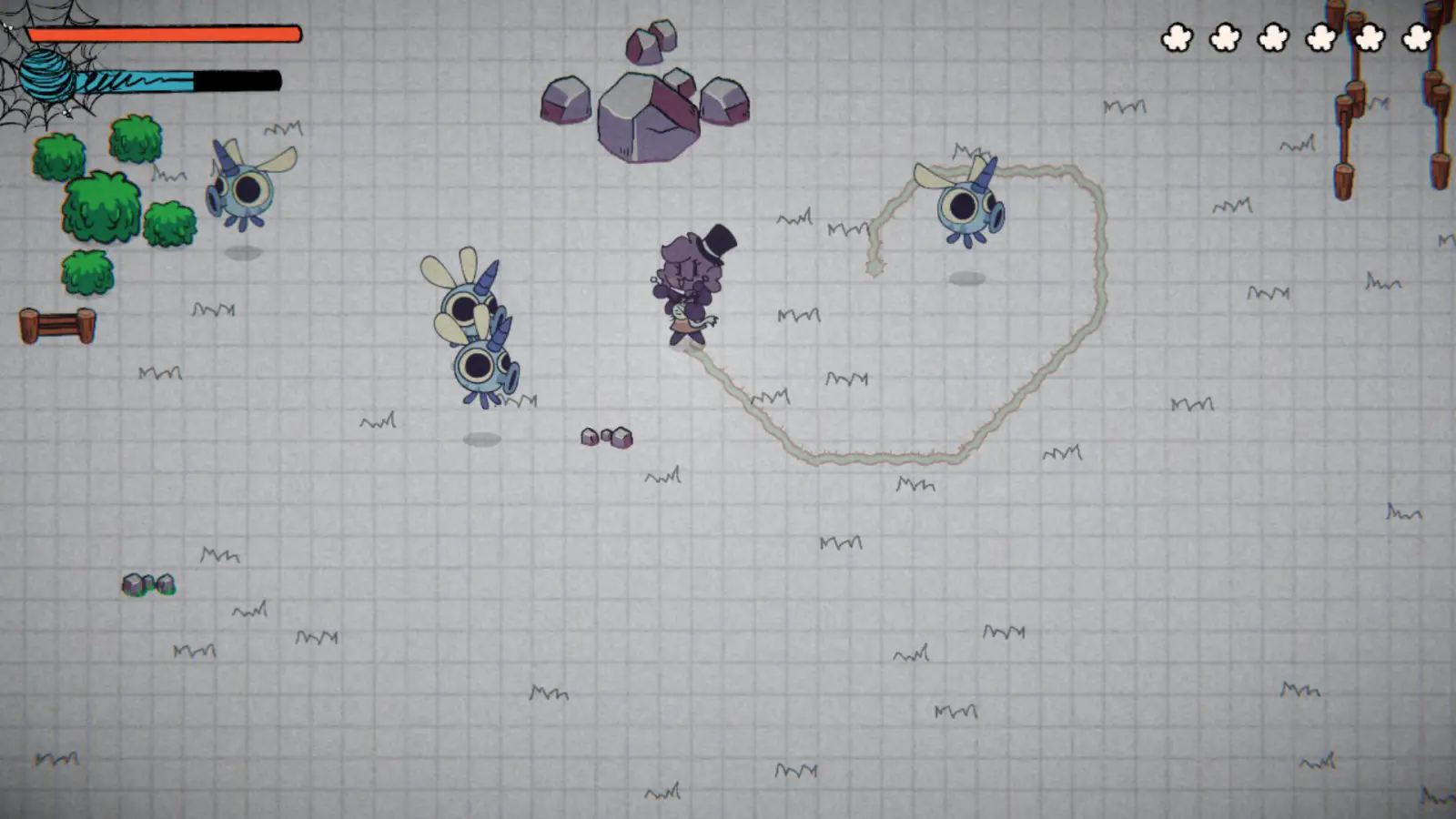 1.在地图上移动,快速冲刺,找到那些不守规矩的昆虫,用蜘蛛网困住它们。