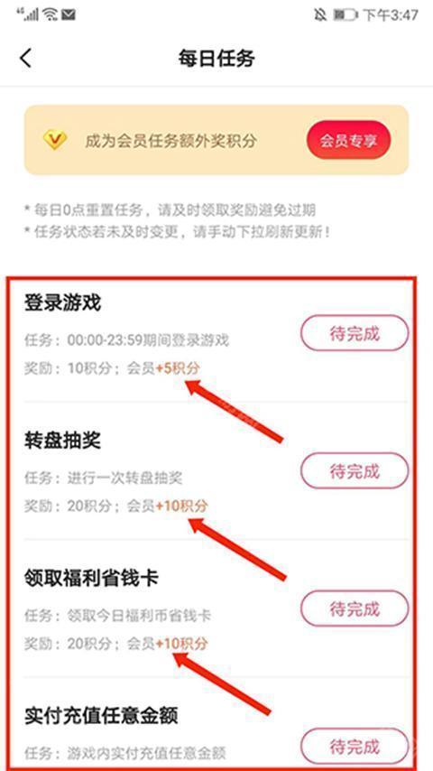 3、进入【每日任务】界面,每日签到和完成相应的任务即可获得积分,