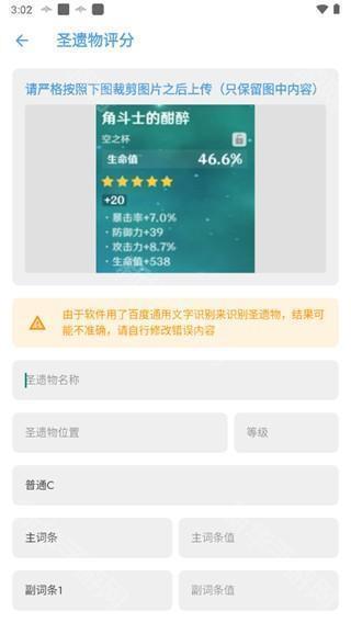 3、选择圣遗物评分,对于游戏攻略热衷的话可以看看,输入圣遗物名称,可以获得详细的介绍,然后会根据属性打出评分。