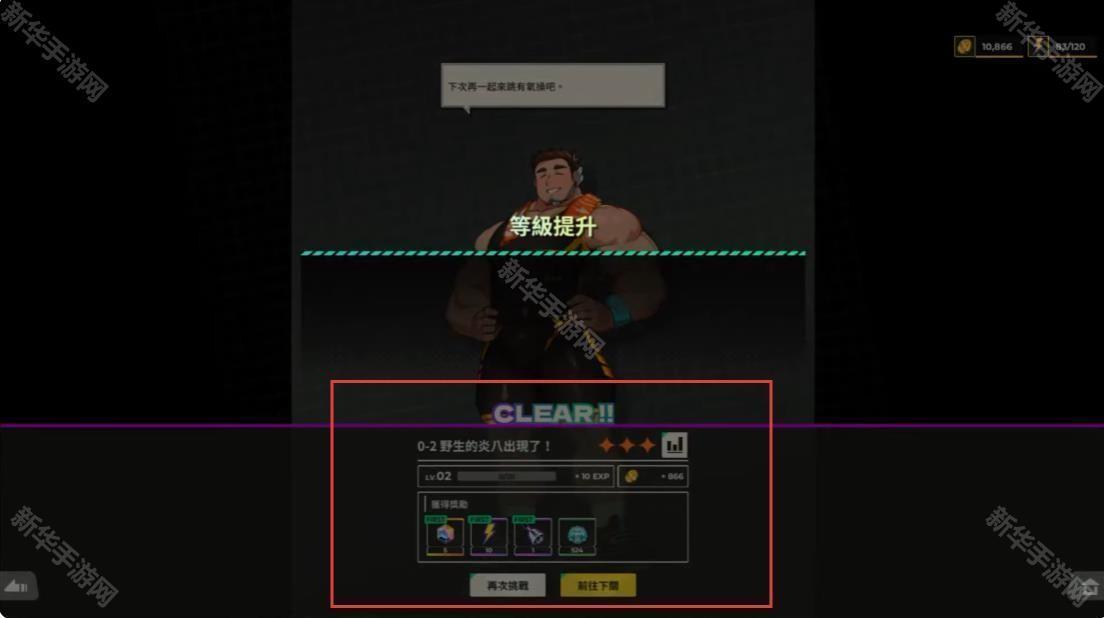 2、战斗过程中,持续操控己方角色释放技能,关注战斗进度,击败敌方后,进入结算界面,查看奖励确认等级提升,准备推进新内容。