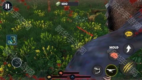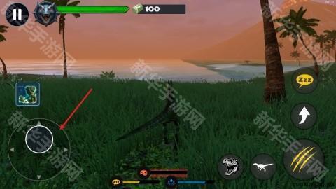 2、进入之后,我们通过左侧的摇杆来控制恐龙移动。