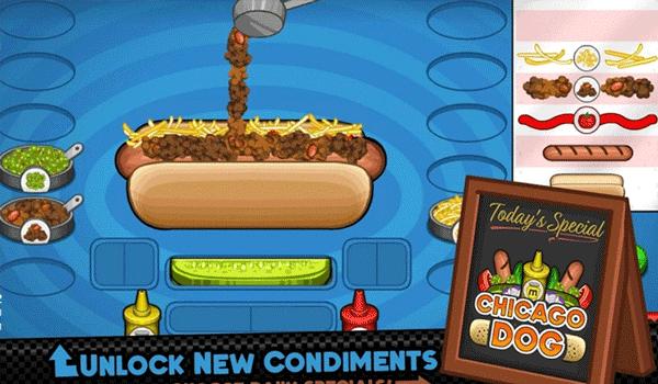 每个顾客所需要的热狗配料都是完全不一样的,玩家无法制作预制热狗。从手工制作到机器自动制作,你将会一步步的提升店铺等级。你是能去经营赚取很多的资金,不断的来升级店铺设施,购买装饰品,打造独具个性的热狗店。