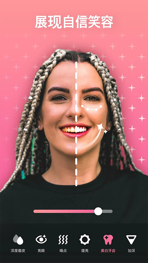 1.Peachy自动识别五官并优化(大眼、瘦脸、美白),保留自然肤质细节,避免“网红脸”失真。