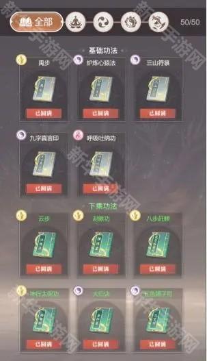 玩家满足一定条件后,可以在问道大厅中向各位师长学习功法。每种功法在升级时会提供不同属性,并包含一种被动效果,玩家可以根据自己的需要选择修炼不同的功法。