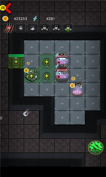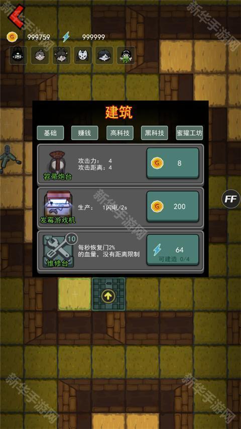 5、然后躺平赚钱,利用金币来升级购买各种建筑,抵挡红衣鬼,不同建筑拥有不同功能,玩家需要合理搭配组合;