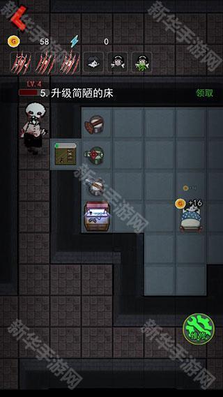 5、在睡觉的时候玩家们可产生金币,通过金币玩家们可升级门、床、以及装备武器;