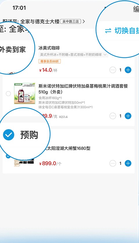 2、订单同时结算,外卖/自提、预购、可同时下单;