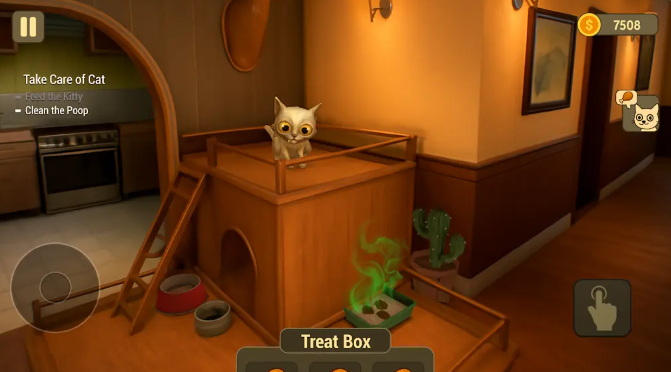 2、猫咪拥有自主行动逻辑,会在不同场景中随机游走、打翻物品或阻挡玩家路径,要求玩家灵活应对突发状况。