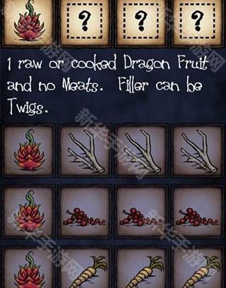1火龙果3填充物,可以是树枝不可以是肉,这是非常好的食谱,搭配自由,保质期长,属性高,有一定的升温效果