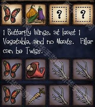 1蝴蝶1蔬菜2填充可以为树枝,不能为肉