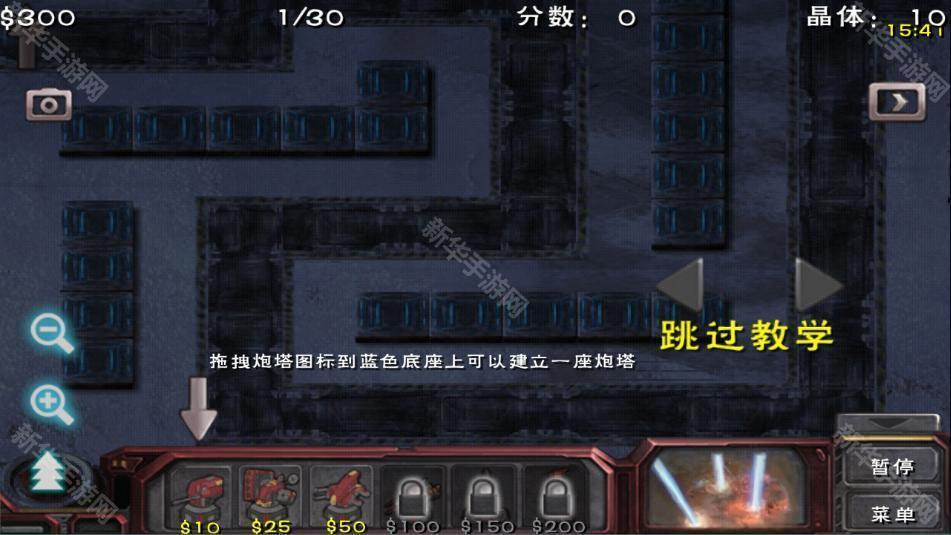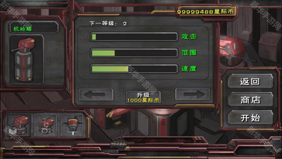 3、玩家可以建造不同类型的防御塔,包括火炮、激光塔、导弹阵地等,各具特色,通过合理布局来发挥其最大威力。