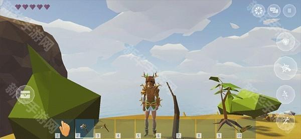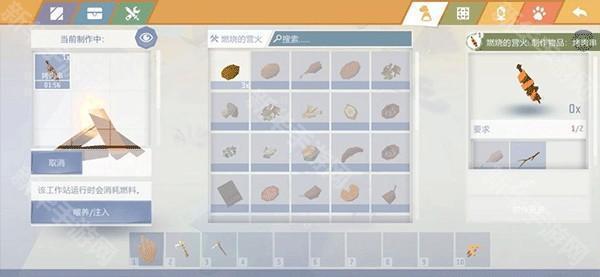 在出生岛上树木繁多,其中有很多果树,岛主们可以采摘果子进行充饥(靠近果树→采摘果实→打开背包→食用果实),但果实能减少的饥饿感比较有限,所以此时岛主们可以拿起制好的石斧,去捕猎一些兔子、野猪、螃蟹等生物来获取他们的肉类,然后回到营地将其放在篝火上即可制成美味的烤肉~