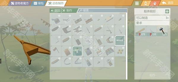 船体主要组件有:船舶、船舵、船锚、带帆桅杆、船体前部、船体后部,总计6种不同的组件。需要的材料和工具主要有:原木、钉子、布、任意绳子、任意锤子、裁缝工具箱、木板、任意斧头、任意锯子等。而这些东西,正是需要岛主们通过之前建造出的工作台来制作。