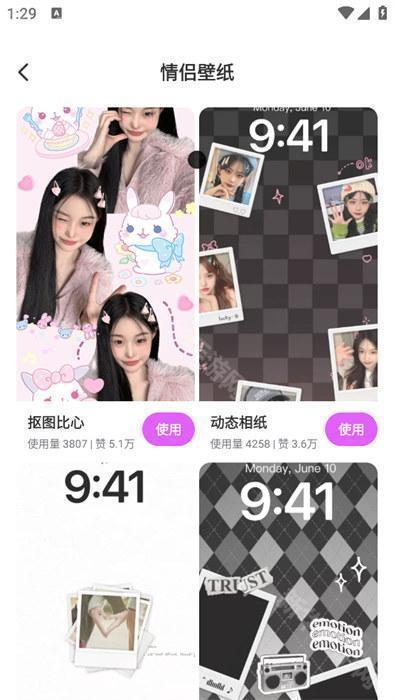 3、拥有很多的情侣壁纸资源内容的模版可以使用,能够用上自己对象的照片当壁纸;