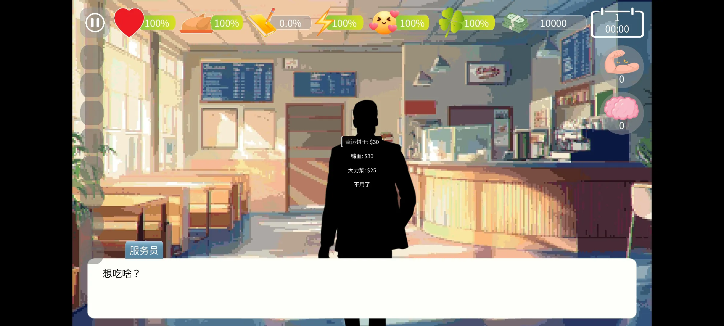 3.游戏将“时间分配”作为核心策略维度,玩家需在学习(推进论文进度)、收集物资(维持生计)、休息(保障健康与精神状态)三者间反复权衡。