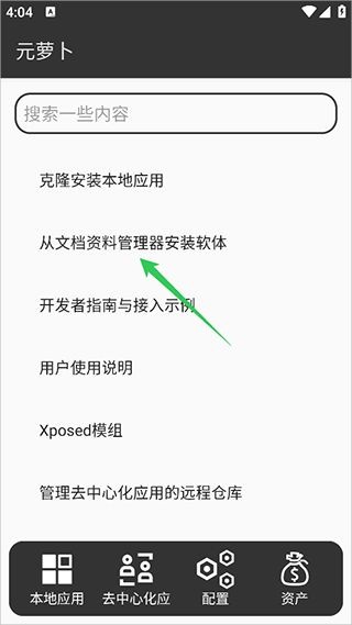 3、应用安装好后,我们再来安装Xposed模块,其过程和普通的应用是—样的,同样可以直接克隆导入安装,也可以通过文档资料管理器安装,比如这里就是通过文档资料管理器来安装qq的一个Xposed模块。