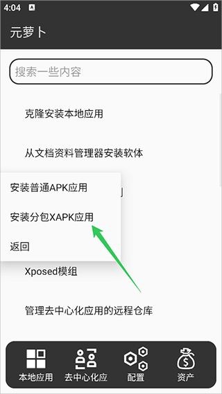 2、然后在弹出的选项中点击【安装分包xapk应用】