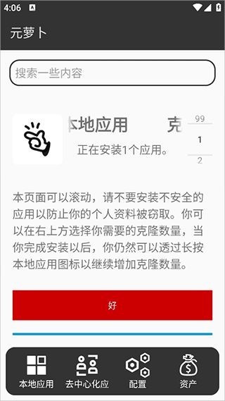 1、进入软件中的配置页面,点击克隆安装需要注入模块的应用。