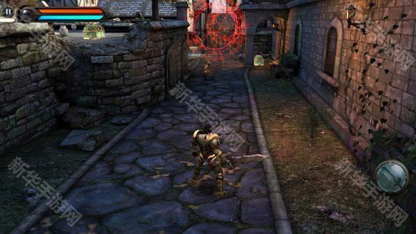 键位很简单,左边是虚拟摇杆,右边中间是砍杀键,周围围绕的三个左边和下边是武器附着的两个技能,你可从火、冰、电三个系统内选两个。上面的键位很重要,短按是前冲滚,长按是冲刺,冲刺距离与盔甲所附的“体能”参数有关,灵活应用对闪避敌人攻击和发动特殊攻击是很有作用的。这些键在一开始时没有,第二关才齐全,本人是一周目通关重玩写攻略,所以是齐的,包括盔甲也换了套好看点的。