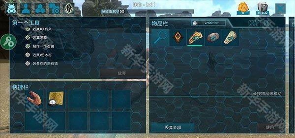 3、选择之后就可以开始你的冒险之旅了,刚开始玩家们需要按着右上方的任务进行操作,你需要收集石头、木材等,制作各种武器装备去探索这个世界;