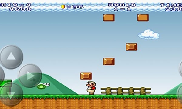 2、通过虚拟按钮操作,玩家可以控制马里奥的动作,并跳过屏幕上的按钮。