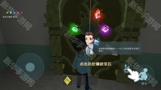 4、到了大门以后,点击此处镶嵌宝石,逃生完成!