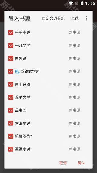 4、即可看到以下所有书源,你可以自行挑选进行导入;