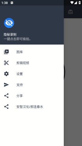 4.秘密拍摄开始录制,停止在后台正面或背面的摄像头上录制单键录音。