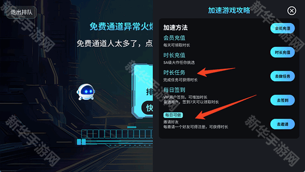 5、发现免费渠道人太多,可以通过做任务或邀请好友方式来获得免费时长和免排队福利