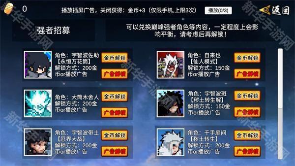 2、在这里就可以看到需要一定的条件才能够解锁卡卡西和长门,但是我们可以通过兑换码来进行解锁