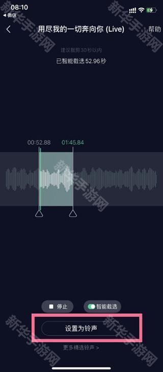 1、用音乐 播放器 打开喜欢的歌曲,制作铃声后,选择【设置为铃声】。