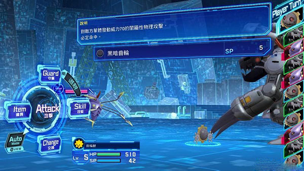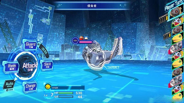 下方数码宝贝数据条显示其生命和sp。
