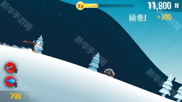 2.滑雪大冒险游戏提供了很多加速的道具,像木房、搭板、指示牌等物体。