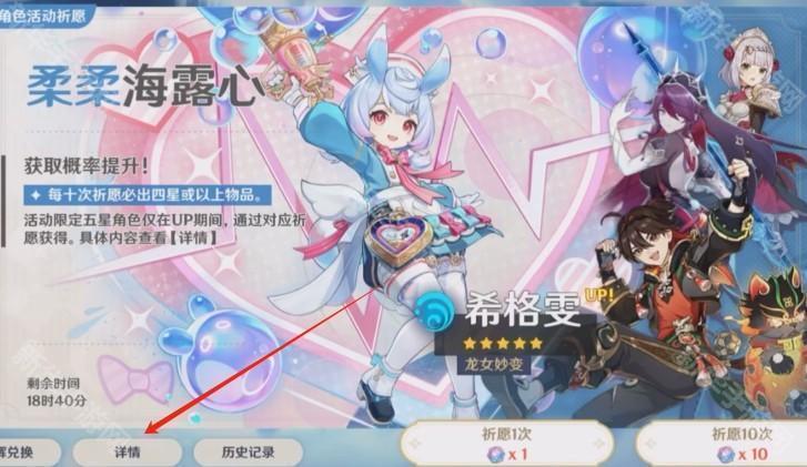 2.然后进入游戏点击抽卡页面左下方-查看详情-历史记录,随便翻几页