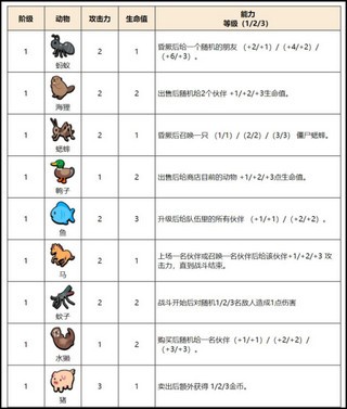 Blowfish/河豚(3/5): 暴怒:造成伤害随机对 1 个敌方随从受到 2/4/6 点伤害Camel/骆驼(2/5): 暴怒:受到伤害给予后方 1 名我方随从 +1/2/3 攻击力、+2/4/6 生命值