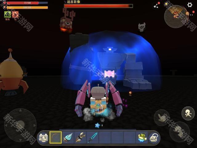 待方块摆好后,整个地面变成焦土的模样,远古巨人图腾也会发出亮光。几秒钟后,巨人就会被玩家召唤出来了。
