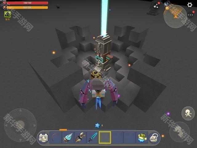 等一切都准备好后,玩家就可以乘坐飞船来到萌眼星,在远古巨人图腾前后左右四格的地方分别放上四种不同的方块,其中蓝钻块放在图腾的正面,紫荧石块放在图腾的背面,孔雀石块和星铜石块分别放在两边。