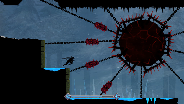3、这是个许多新手都望而生畏的地方。我简称叫钟摆锤吧。许多新手玩家并不知道如何跳过这个地方。其实并不难,掌握一点时机和小技巧就可以了。首先等待锤子是从面对你的方向向远离你的方向摆动,然后跳过去【注意:摇摆锤不只有一个大球,底部还有个小球跳的时候不要碰到】,当大球往回摇摆的时候,跟着小球前进,大球摆到边缘的时候会有停顿,这时候一个小跳(二段跳更保险)即可通过。